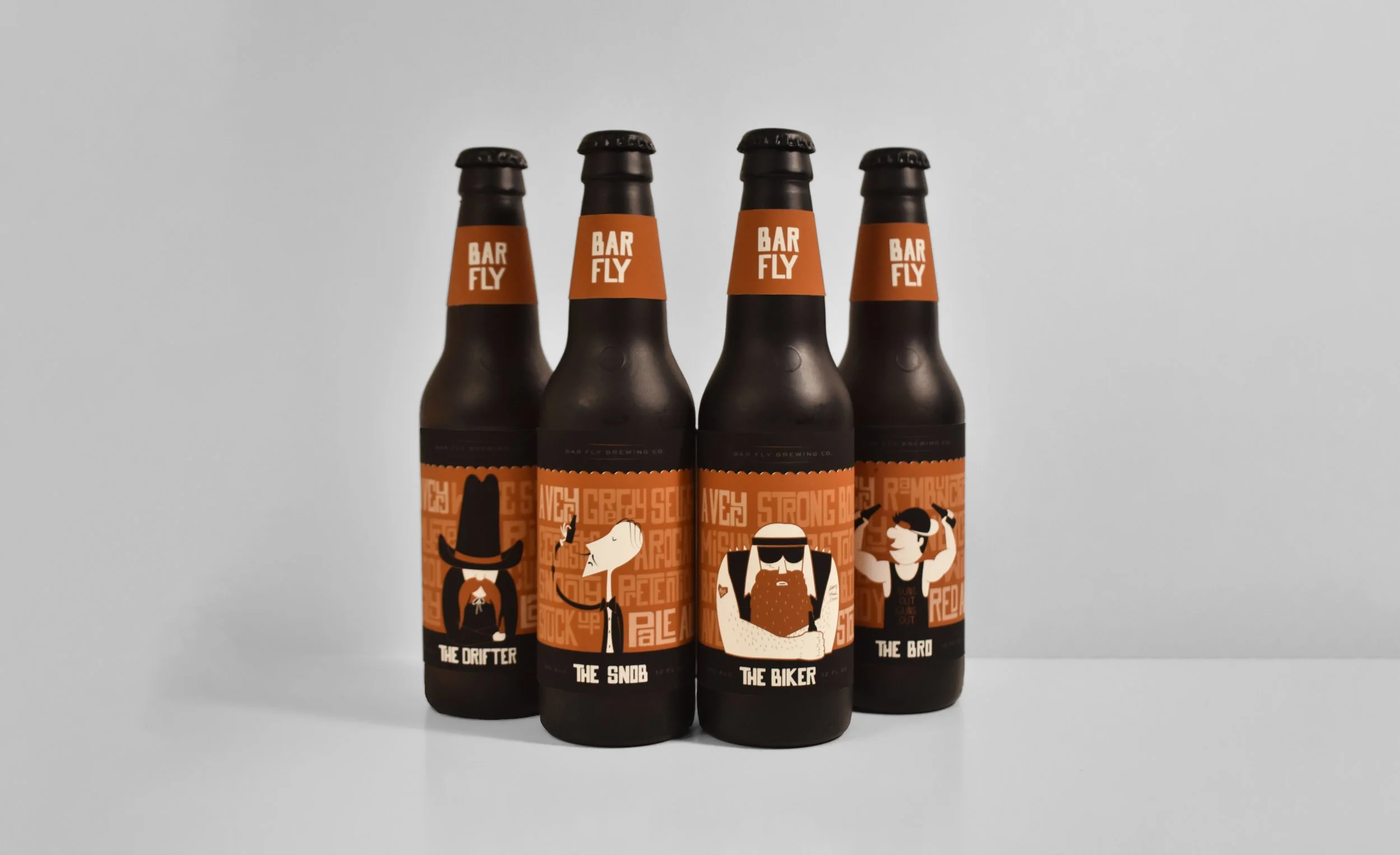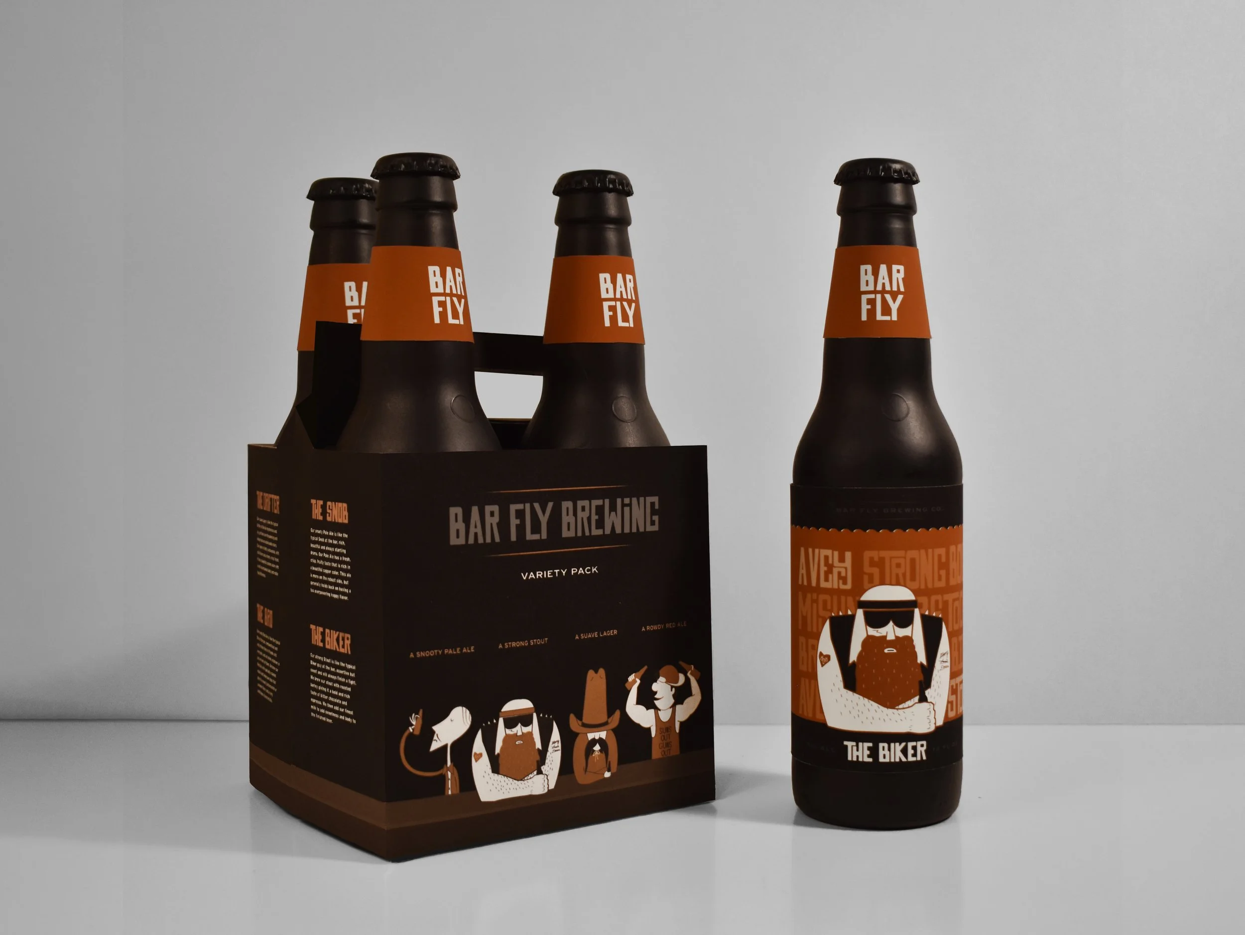 Just like people, every beer is different. Bar Fly Brewing Company sells all different types of beers with each kind having their own specific characters. Each design was inspired by stereotypical people you might meet at the bar. The bottles depict the character enjoying their beer the way they would in the bar, with specific adjectives one may use when meeting them, decorating the background.