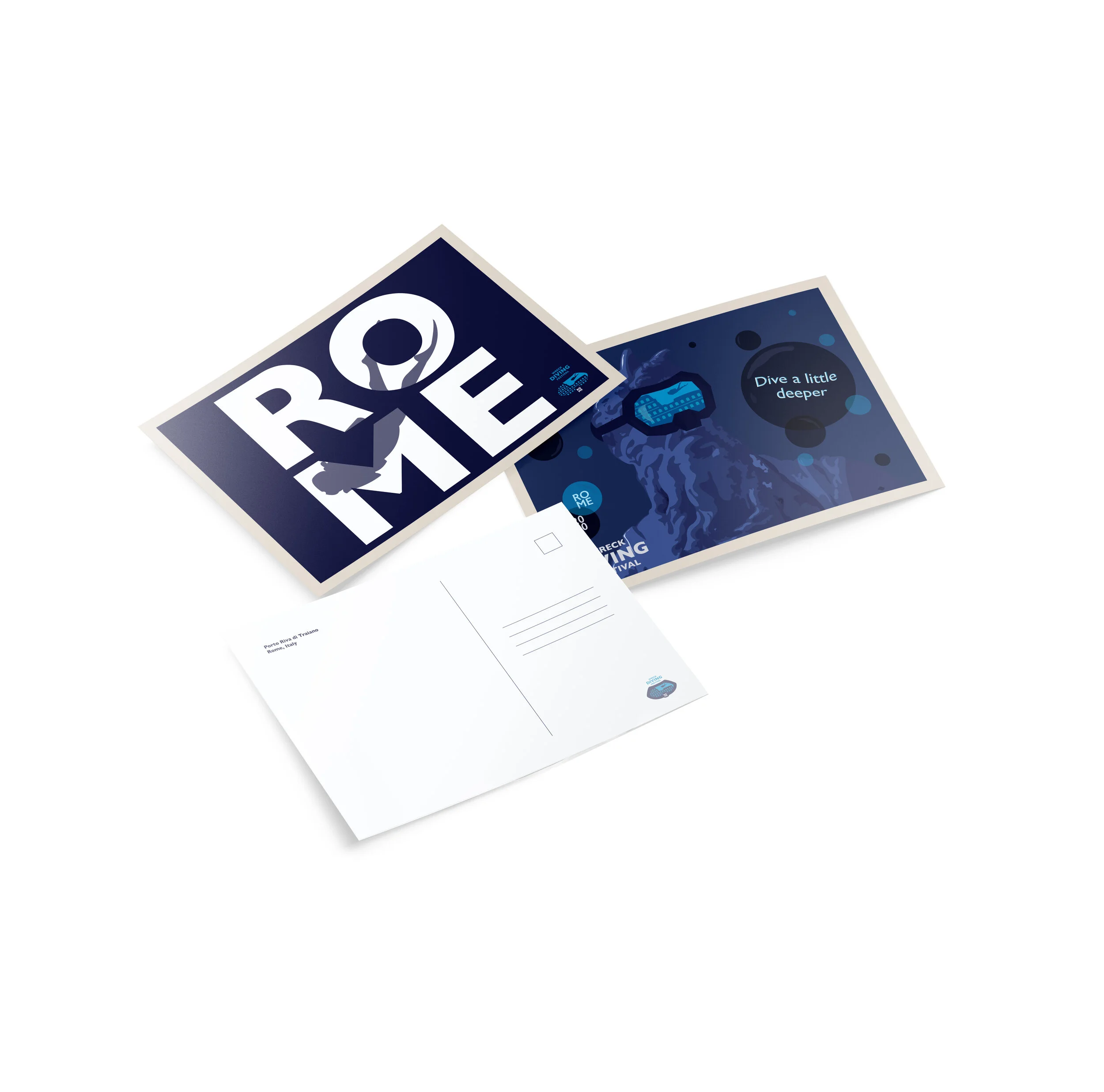 This is a logo and poster for a Wreck Diving Festival that is taking place in Rome. The logo design is based on the diving experience and the history of Rome’s architecture. The poster’s inspiration came from the classic art history of Rome mixed with the fun of diving.